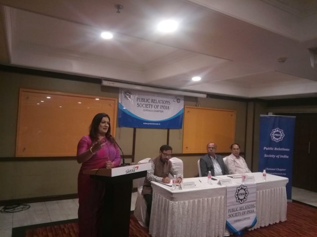 A multi faceted personality, Ms Apsara Reddy is a consultting editor, Deccan Chronicle and Times of India, Chennai, a columnist, social activist, crusader for transgender, campaigner for child protection from atrocities and exploitation etc.,addressed the members of PRSI Chennai Chapter on the topic "How does PR survive the harsh social media - Proactive or reactive.